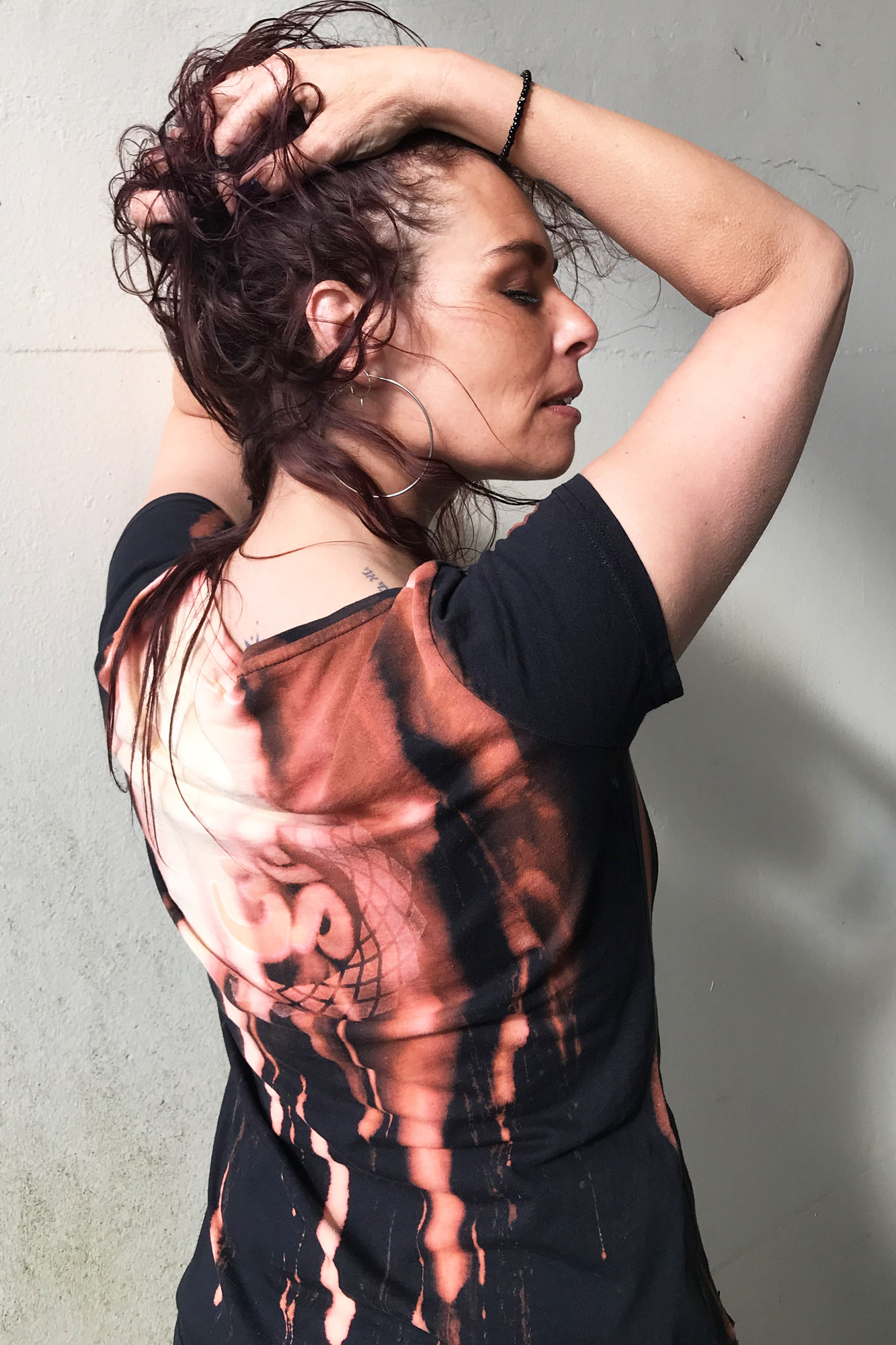 Het T-Shirt Burning Flame is tot stand gekomen door verschillende Bleach Dye technieken. De vormen die in het creatieve proces tot stand zijn gekomen doen denken aan vurige vlammen. Kan jij wel wat meer van het element vuur gebruiken in je leven? dan is dit artistieke SoulShirt wellicht voor jou bedoeld. Op achterzijde is tussen de schouderbladen staat het Ohm teken, samen met de vlammen een harmonisch shirt. Wil je hier meer over weten? en ga je graag op onderzoek uit wat het voor jou kan betekenen? Klik dan op het woordje Ohm.