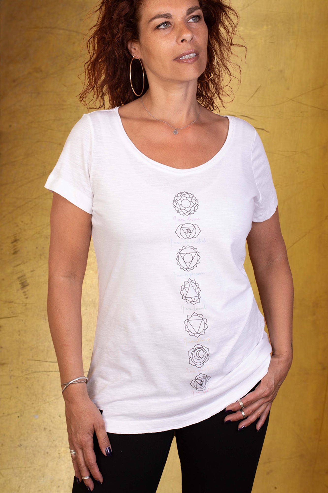 Wil je meer weten over het Yoga Shirt Chakra Affirmation, stel je vraag op de contactpagina.