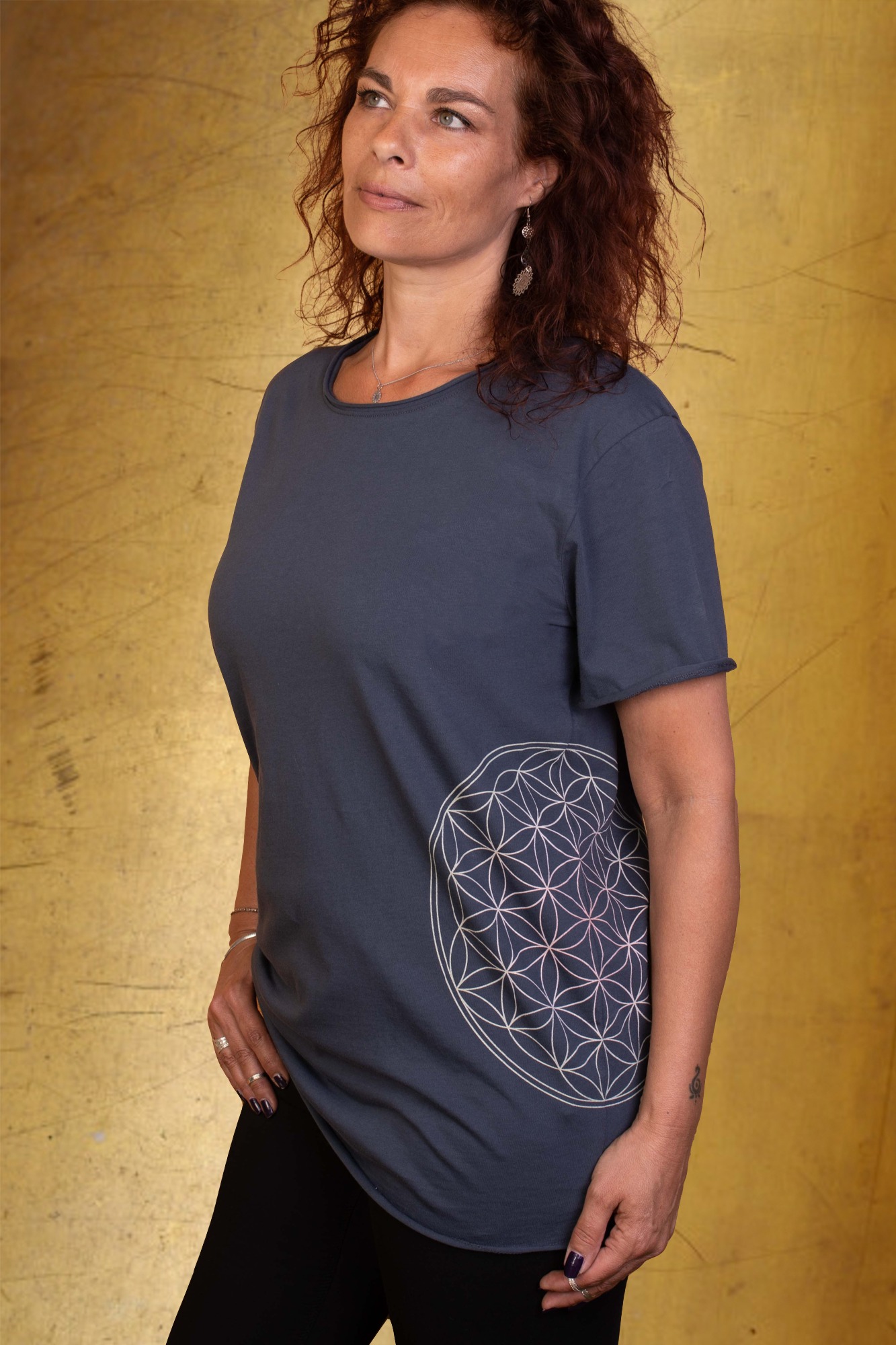 Dit extra lange SoulShirt is voorzien van The Flower of Life. The Flower of Life belichaamt de cyclus van de schepping en laat zien dat al het leven voortkomt uit dezelfde bron. Draag deze Flower of Life T-shirt als een herinnering aan de eenheid en harmonie in dit heilige geometrie symbool.