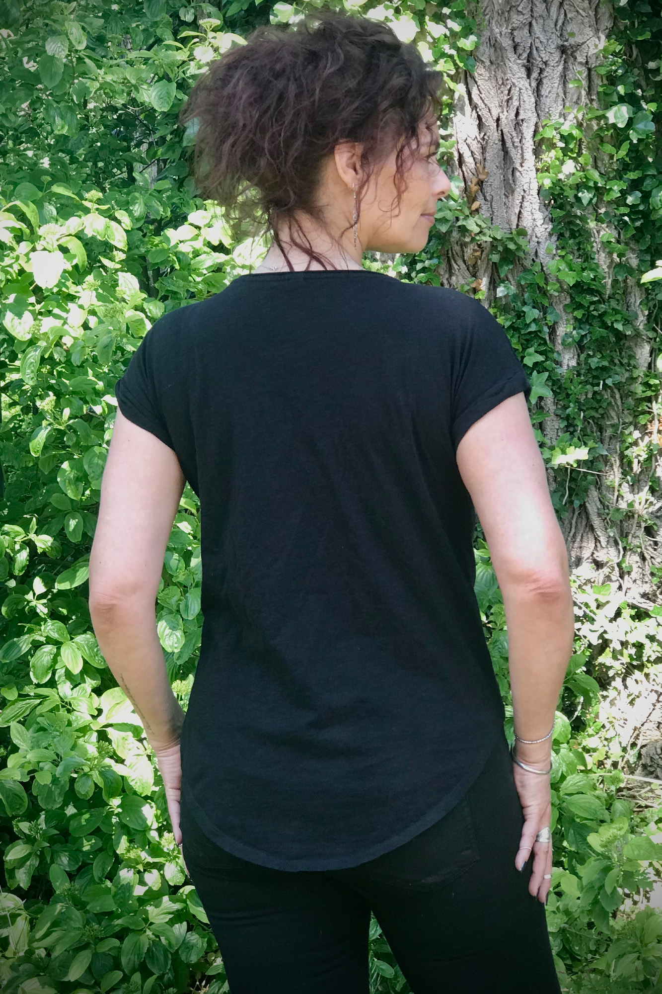 Het is met veel passie, aandacht en bezieling gemaakt. Rechtstreeks gecreëerd vanuit de bron, de bron van creativiteit. De creativiteit stroomt vrijelijk in ons atelier.  Zonder al te veel na te denken en in een flow, zo is dit shirt ontstaan.