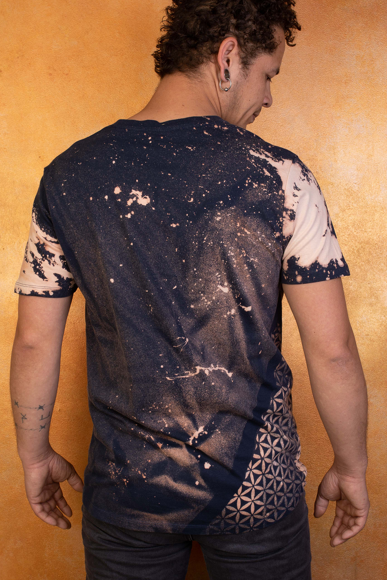 Dit hand-made SoulShirt is een kunstwerk op zich en voorzien van The Flower of Life en het Ohm teken. Het Ohm teken is een mantra die veel gebruikt wordt bij Yoga en Oosterse tradities zoals Boeddhisme en Hindoeïsme. Met behulp van verschillende Bleach Dye technieken is dit shirt van The Flower of Life met liefde en bezieling ontstaan. The Flower of Life belichaamt de cyclus van de schepping en laat zien dat al het leven voortkomt uit dezelfde bron. Draag deze Flower of Life T-shirt (Ohm) als een herinnering aan de eenheid en harmonie in dit heilige geometrie symbool. “Wearable Art is what it is”. Gemaakt op extra dikke kwaliteit 100% katoen. Uiterst uniek, er bestaat er maar eentje van op de gehele wereld, is deze voor jou?