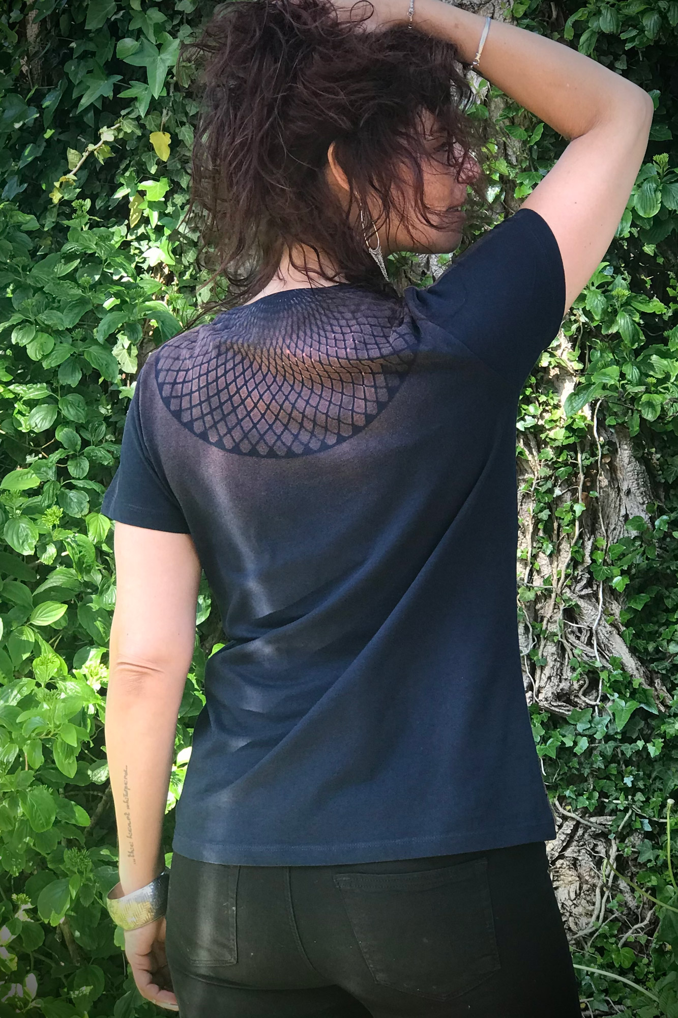 Het is met veel passie, aandacht en bezieling gemaakt. Rechtstreeks gecreëerd vanuit de bron, de bron van creativiteit. De creativiteit stroomt vrijelijk in ons atelier. Zonder al te veel na te denken en in een flow, zo is dit shirt ontstaan.