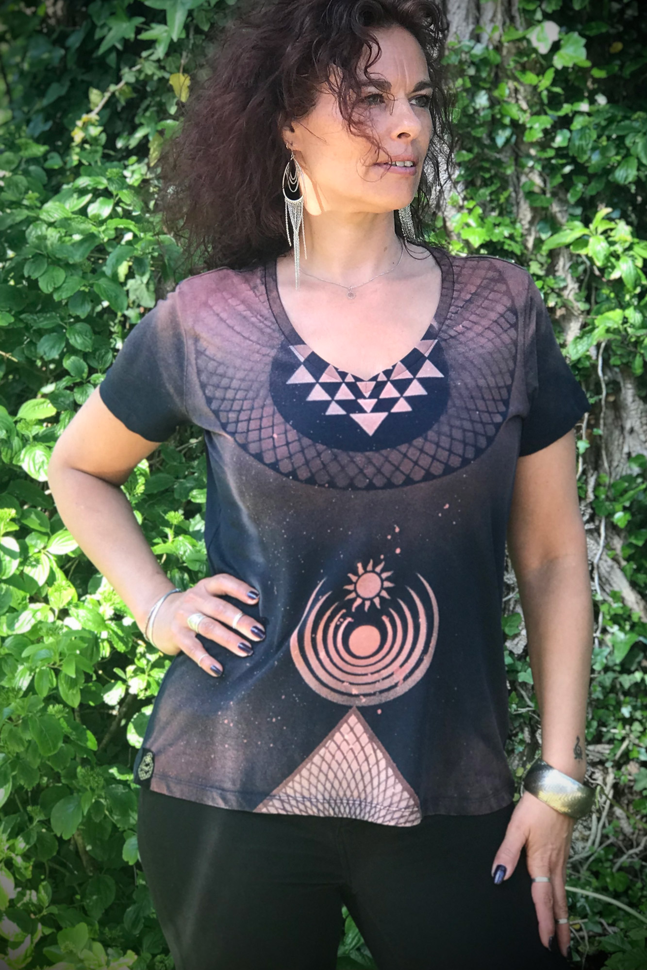 Dit T-shirt Rise and Shine hand-made SoulShirt is een kunstwerk op zich en voorzien van het Ohm Teken op de achterzijde. Ohm is een mantra die veel gebruikt wordt bij Yoga en Oosterse tradities zoals Boeddhisme en Hindoeïsme. Met behulp van verschillende technieken Bleach Dye is dit shirt met liefde en bezieling ontstaan. Deze is voor de liefhebber van vrije expressie en mag oprecht draagbare kunst genoemd worden. “Wearable Art is what it is”. Uiterst uniek, er bestaat er maar eentje van op de gehele wereld, is deze voor jou?