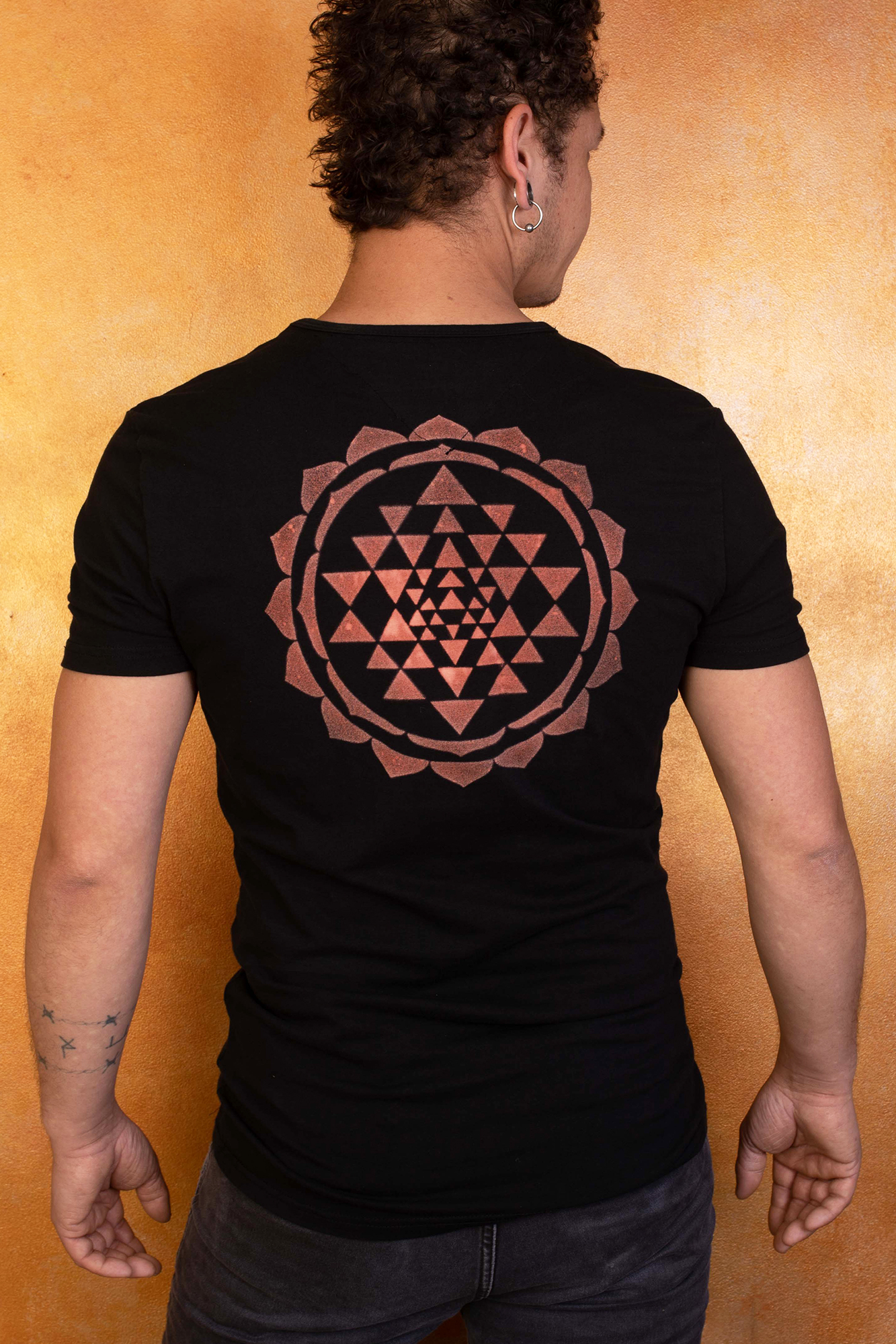 T-Shirt ‘Sri Yantra’ is met veel passie, aandacht en bezieling gemaakt. Rechtstreeks gecreëerd vanuit de bron, de bron van creativiteit. De creativiteit stroomt vrijelijk in ons atelier.  Zonder al te veel na te denken en in een flow, zo is dit shirt ontstaan.